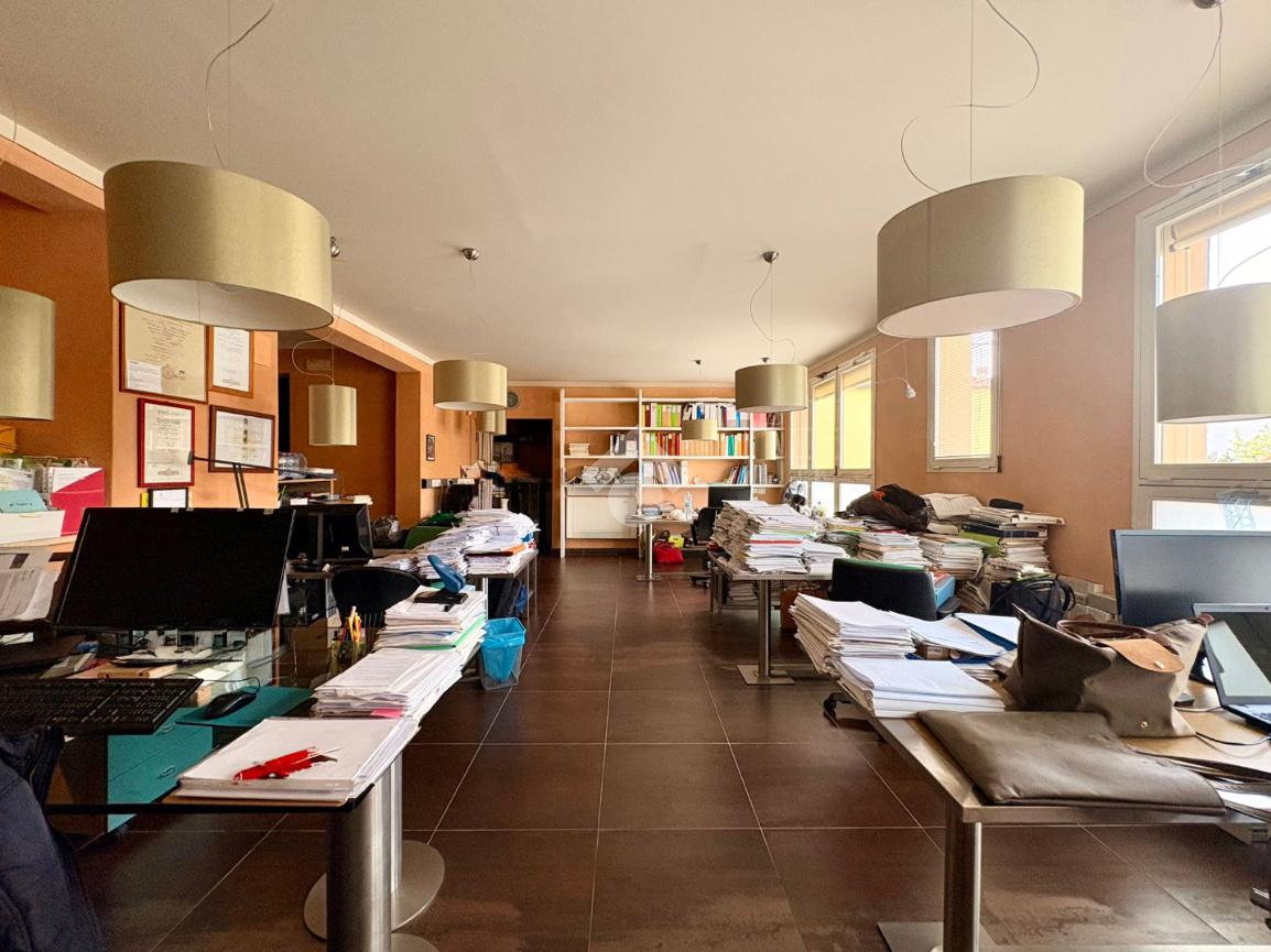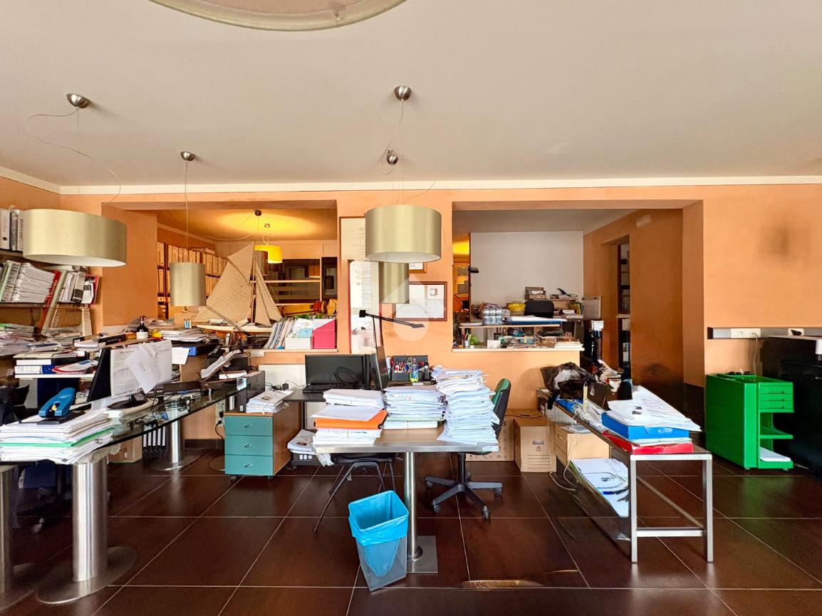 L'ufficio si sviluppa su più livelli: il piano terra di circa 145 mq con un'ampia superficie operativa attualmente suddivisa in vani spaziosi e luminosi oltre a due bagni privati. Completano il piano due posti auto esclusivi.
